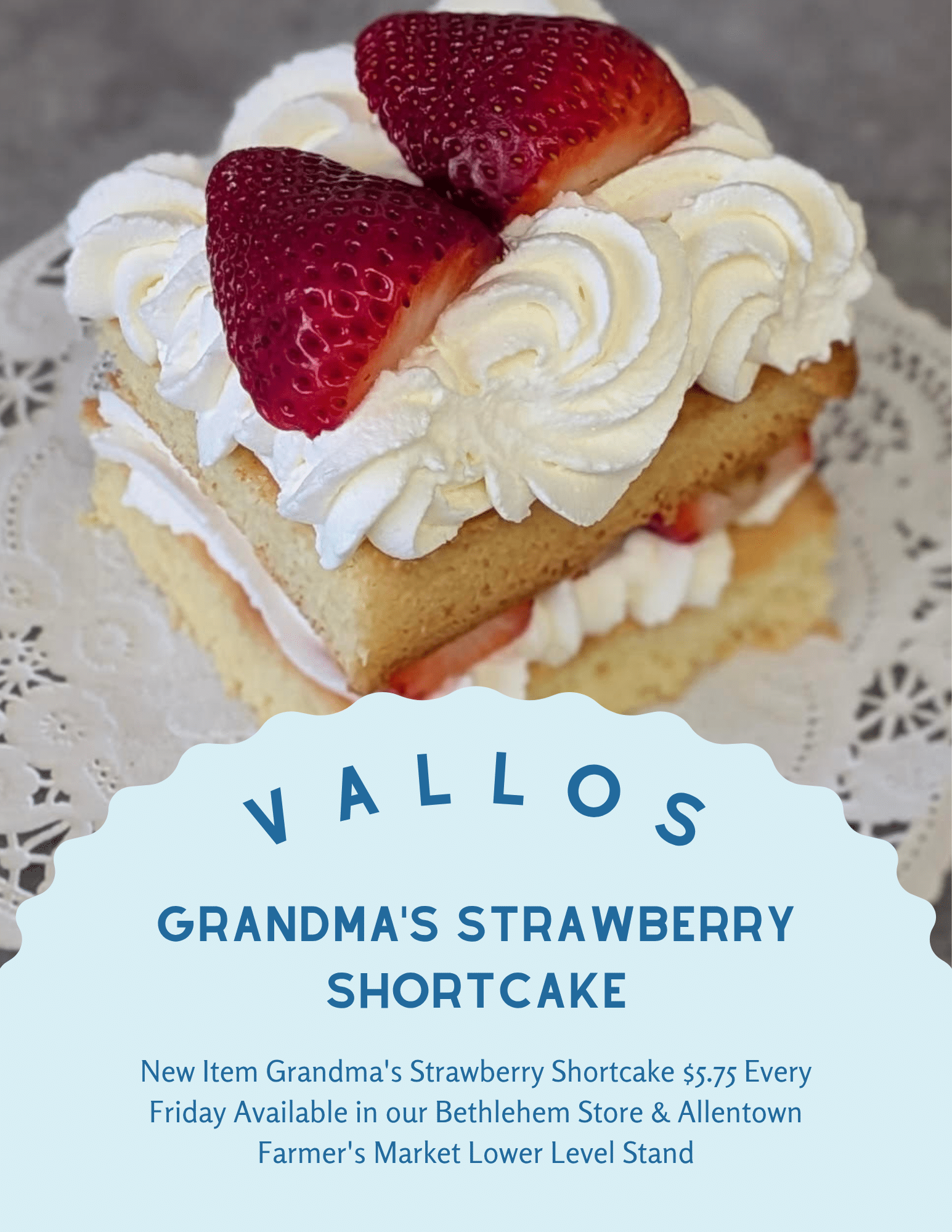 Welcome to Vallos Bakery, a 3rd generation family-owned bakery for over 99 years. We offer a Bethlehem Retail Store, 2 stands at the Allentown Farmers Market and Wholesale Delivery for Businesses.